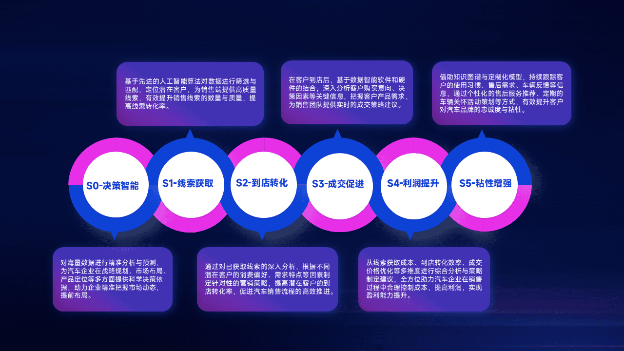 通过拓宽潜在客户来源、、、、优化线索分配并提高到店转化率,,,,以增强销售效率。。同时,,,利用线索数据不断优化分析模型,,,有效提升转化率,,,,扩大营销影响力。。。