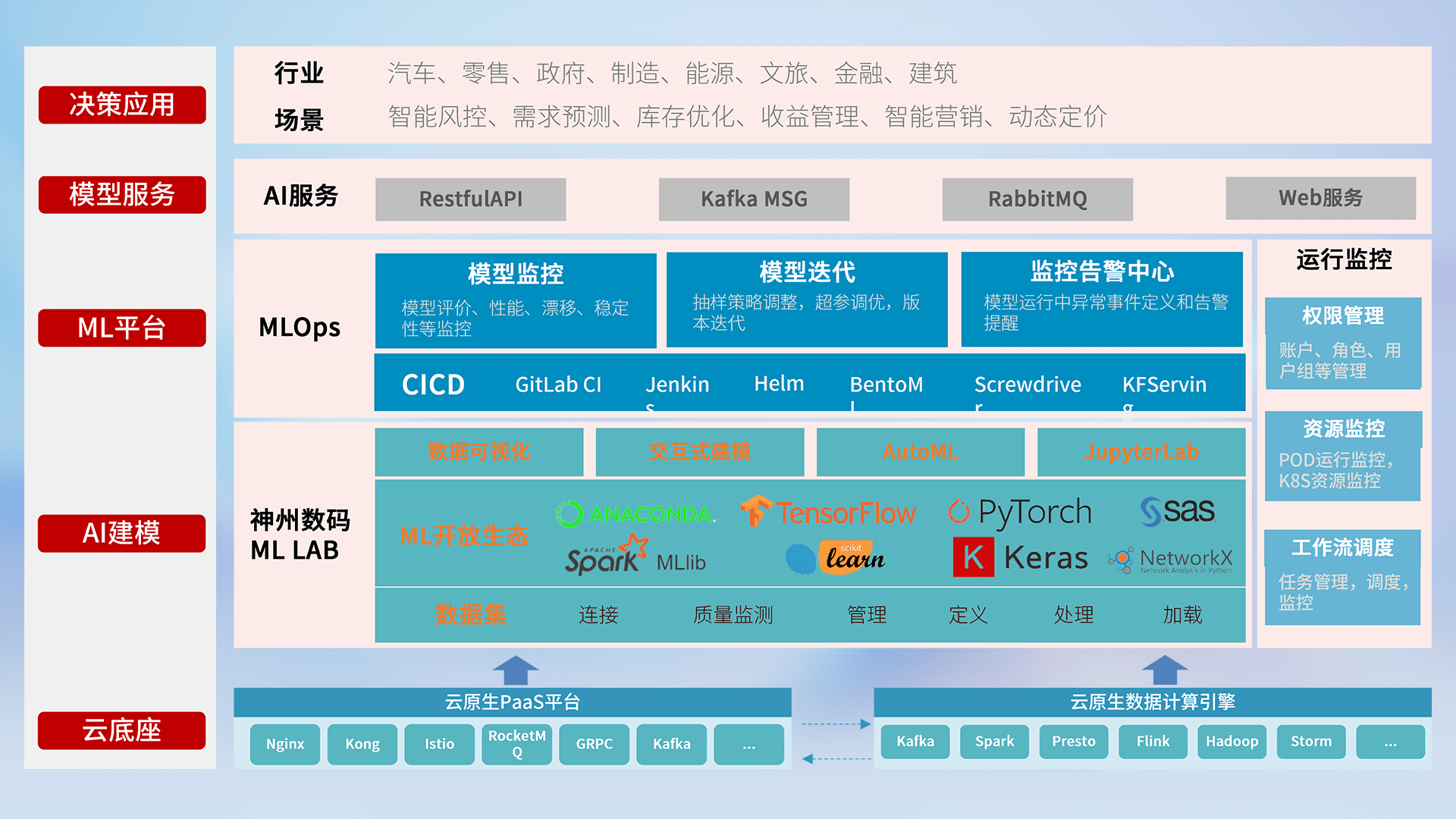 数据+模型双引擎驱动,,面向智能服务场景,,,,快速灵活利用AI技术,,支持业务决策,,,助力企业智能化转型破局。。。